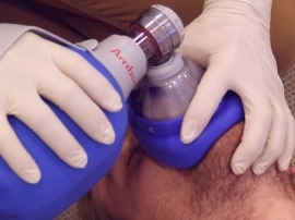 Der C- Griff: Daumen und Zeigefinger drücken die Maske aufs Gesicht,