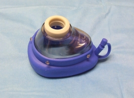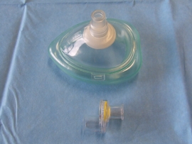 Einfache Maske mit Filter, die außerklinisch eingesetzt werden kann. Die Beatmung wird durch den Filter durchgeführt, die Ausatemluft des Patienten entweicht nach unten und kommt nicht zum Helfer zurück.
