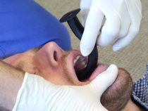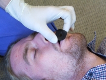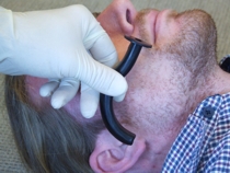 Der passende Guedeltubus reicht vom Ohrläppchen bis zum Mundwinkel...