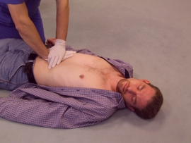 Jetzt werden ebenfalls ruckartige Druckstöße in Richtung Zwerchfell durchgeführt.