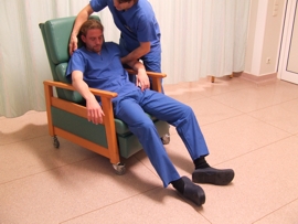 Liegt der Patient auf einer weichen Matratze oder sitzt in einem Sessel, kann er nicht reanimiert werden. Für den Transfer vom Bett zum Boden oder vom Stuhl zum Boden